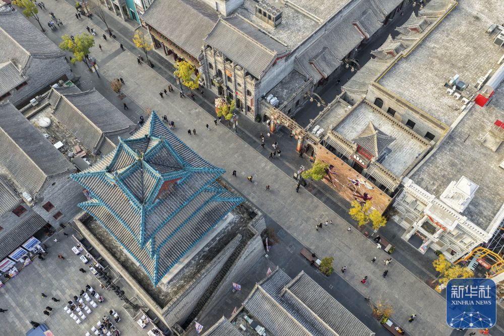 "新華社發(fā)(劉亮亮 攝)↑ 山西省呂梁市臨縣磧口古鎮(zhèn)一角(10月29日攝,無人機(jī)照片)。" 磧口新生 古鎮(zhèn)新“味”
